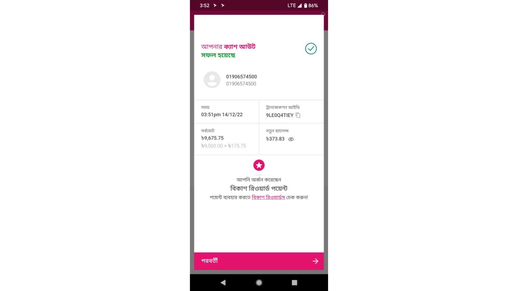 I was cashout 2400 BDT from [protected] to your Fast Nagad agent number [protected]