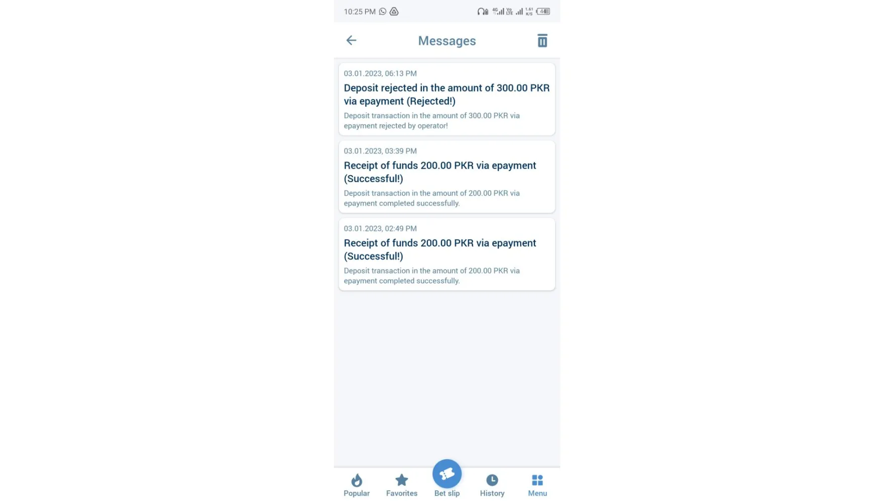 I'm withdraw my money at 1xbet but 1xbet rejected now nd can't return me my money i have sand 500 hundred rs i want return me my money