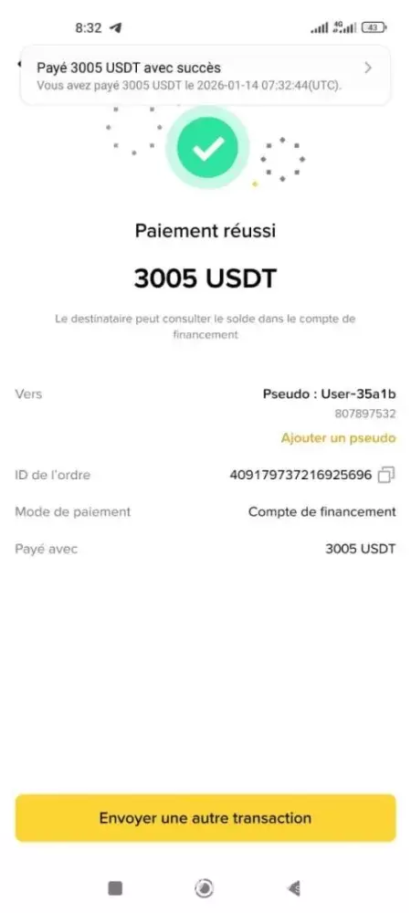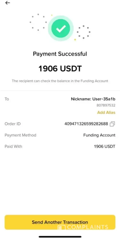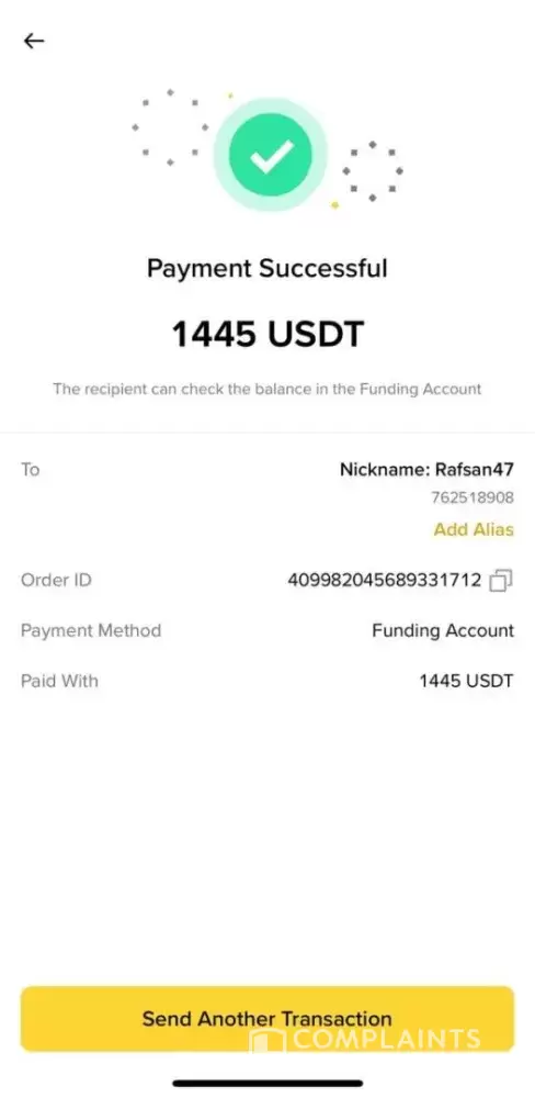 I then sent the additional $1,444 via Binance Pay to Binance ID: [protected] specifically to receive access.
