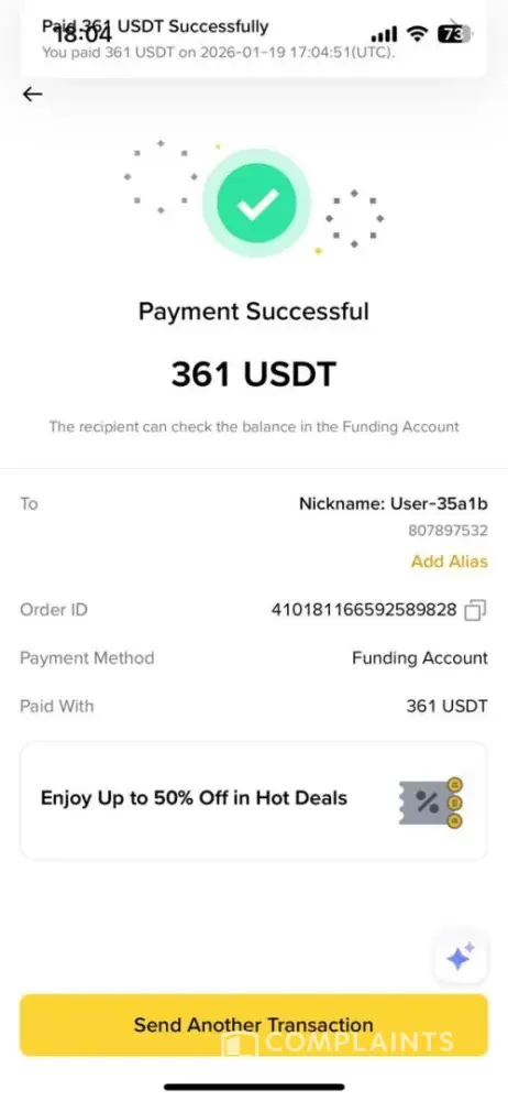 After the verification, I was instructed to make payments via Binance Pay, and I complied. I sent a total of $5,007 first (as requested during onboarding).