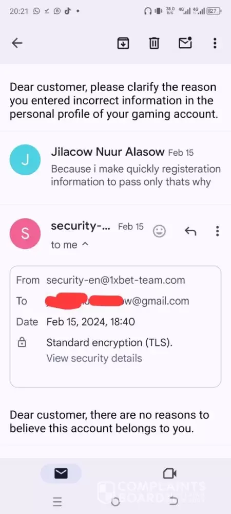 Read full complaint1xbet security department