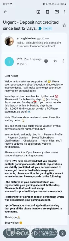 The account was merged but my ₹10,000 is still not credited.