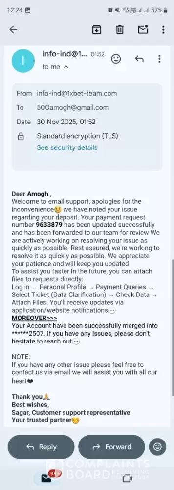 – Emails from 1xBet