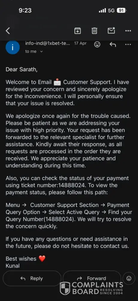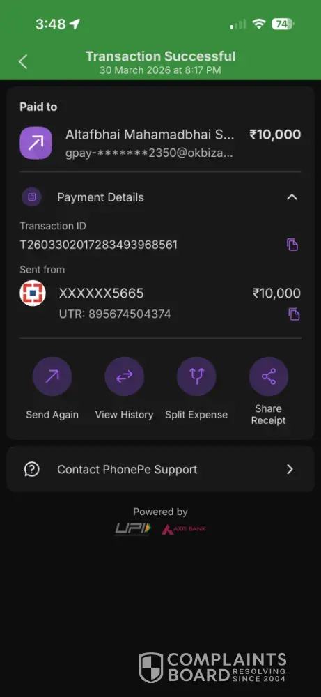I made 2 deposits of 10,000 each, total of 20,000 on 30th March 2026 but money is not credited to my account. The support was poor, always giving me the same reply, no Estimated time of resolution stated. Just asking me to wait and wait . Also giving me fake promises . It has been 20 days till now and still I didn’t receive my amounts . The experience with support was frustrating, no proper resolution. The issue is getting delayed on and on forever. I don’t know what the hell the payment team is doing, no at all working on my case