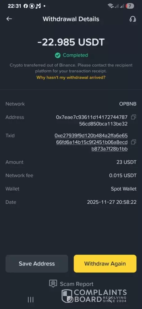 I'm writing to express my extreme dissatisfaction with the handling of my deposit, which was made on November 28, 2025, via Binance. Despite multiple attempts to contact your support team, my issue remains unresolved.