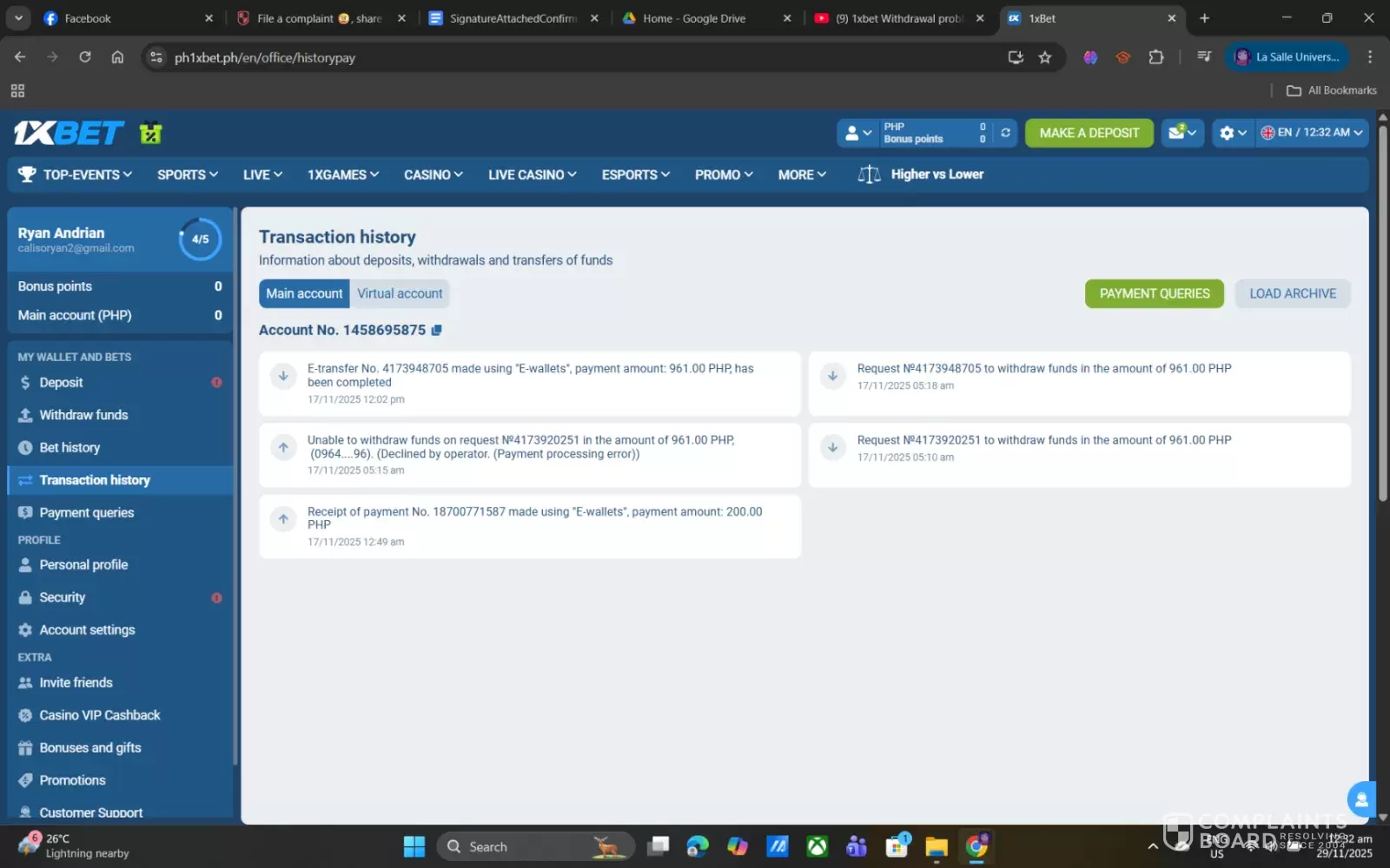 I am filing this complaint because 1xBet approved my withdrawal request, but I have not received the funds in my GCash wallet. I submitted a withdrawal through the 1xBet platform, and although the status shows “Approved,” no money has been credited to my account. I contacted support but received no clear explanation or solution. I provided all required information and verification, and the withdrawal was processed supposedly without issue. Despite waiting beyond the usual processing time, the funds still never arrived. This situation caused inconvenience and financial stress, and it seems many users have reported similar issues with 1xBet. I am requesting assistance in resolving this matter and ensuring the payout is released.