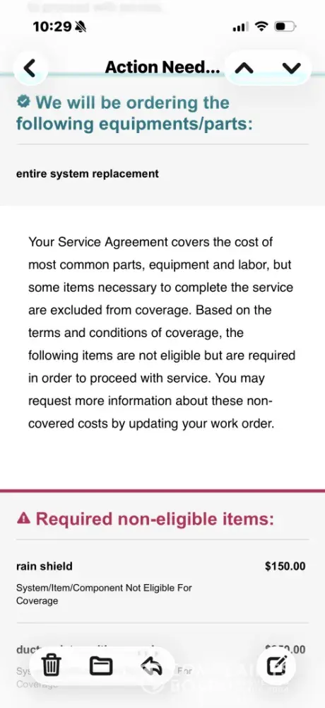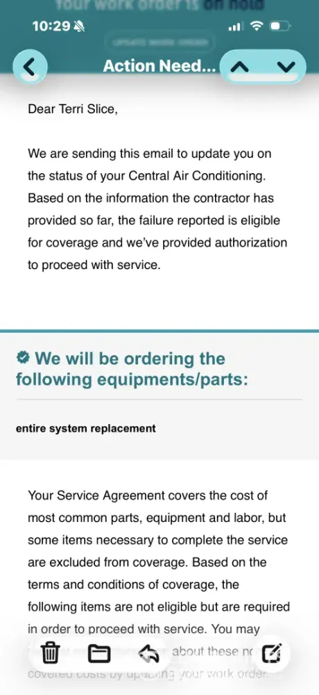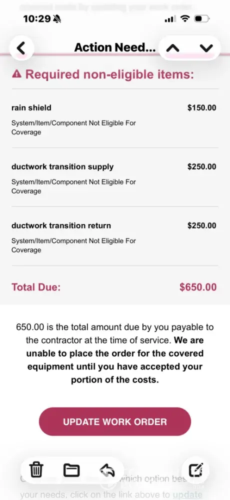 I have been a customer since 2019, I have the supreme coverage. Our HVAC unit wasn’t cooling and I placed a service request. 1st contractor came, stated needed Freon and hole patched, because it needed more than 2lbs, authorization had to be obtained. Then a 2nd contractor was sent and they recommended replacing due to age and since we have supreme coverage it would be covered. I get an email Friday 4/10/2026 stating it would be covered except $650. I agreed to those terms. Monday, I submitted authorization to proceed only to get a voicemail later saying it would only give $2875. Now if I received and email on one day saying they received contractors estimate and that ALL would be cover except $650, that should not change. Sounds like breach of warranty to me. I have been a loyal, paying customer and I expect this initial offer to be honored.