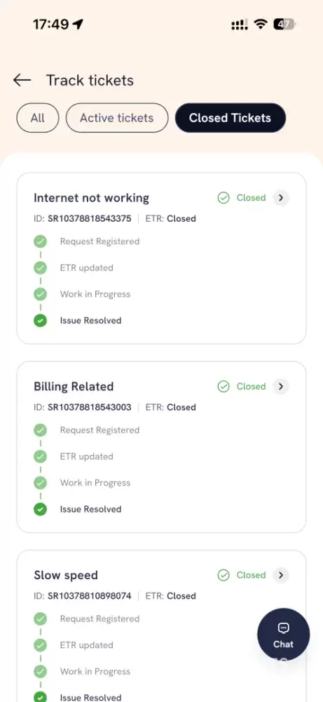 I am writing this to highlight the extremely poor service experience I have been facing with ACT Fibernet, despite being a long-term customer. I am subscribed to the Storm 450+ Mbps plan, but for a long time I have been experiencing: Frequent internet downtime (1–2 times every month) Internet speeds consistently below 70 Mbps Tickets being closed...