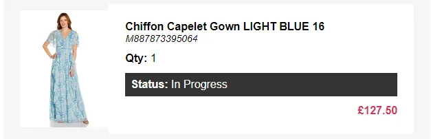 An order made on the 30/9/22 , order no. DUX006510392 through Debenhams