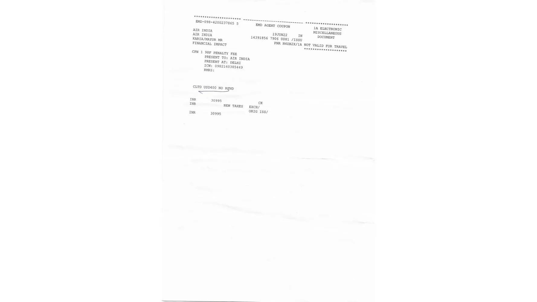 I request a refund of all the amount (US$ 800). I attach a copy of the receipt for your information. Furthermore I have conversation recordings of all the saga on my telephone if required. I further would be looking at a compensation for staying an extra night at a hotel in Delhi and the inconvenience of going through the stress and disappointment.