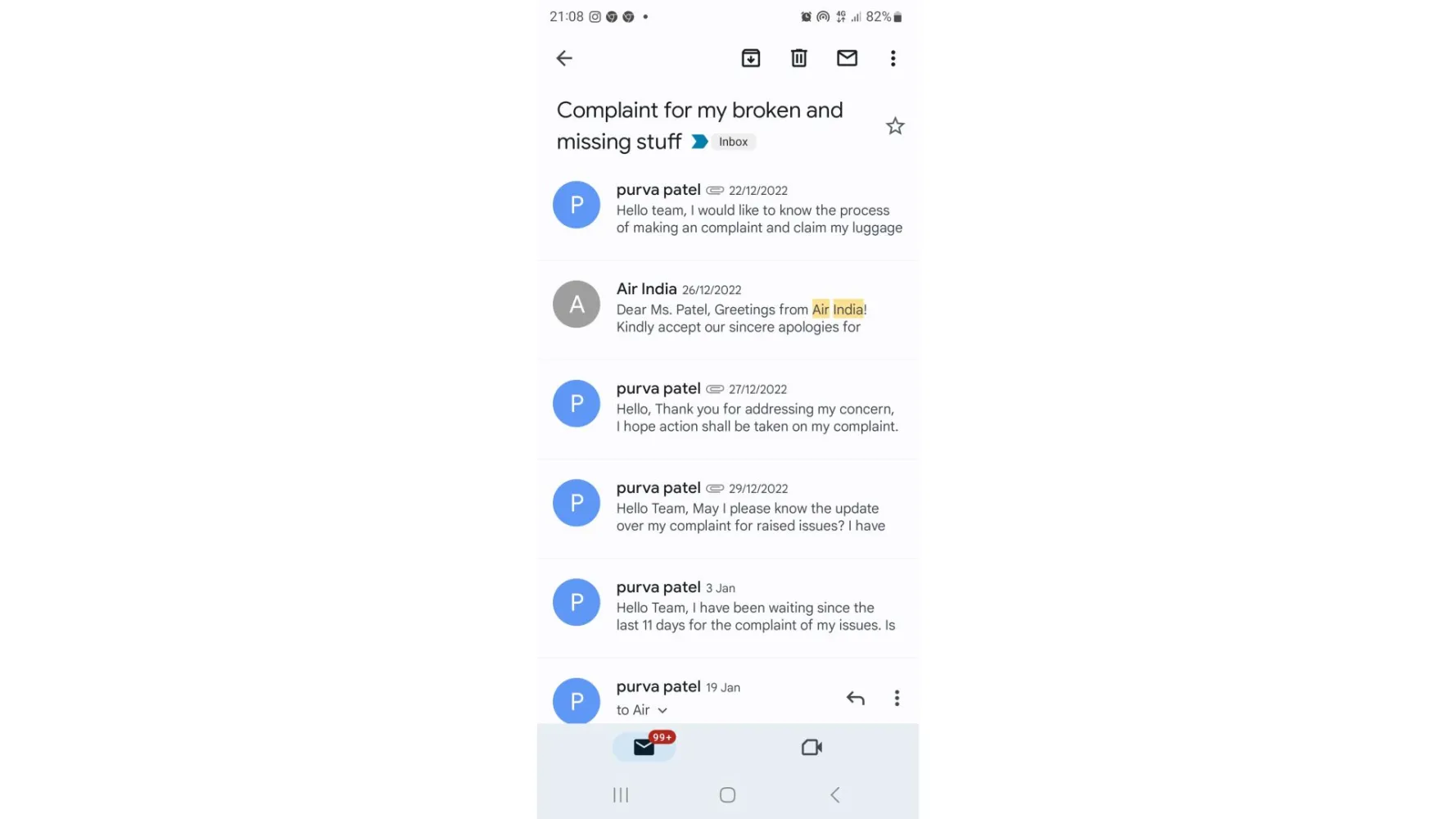 I have travelled from UK to India on 15th December 2022 (15 Dec22, AI 695254), my luggage wasn't given to me time of arrival saying that is left in uk and will be given later in 24 hours, I had to wait for 3-4 days if I remember that correctly to get it, and when I receive it my bad was teared from side and I have asked for it they said it’s by the time of moving that might have happened and when we checked it we find out missing stuff and lots broken stuff in bag, I write an email to them they share one reference number and ask for my boarding pass details. Which is shared to them on same time till now it’s been more than 2 months now I haven't heard anything from them? Also by the time of arrival a lady staff who took my details for my bad and missing stuff she tried to take pictures of my passport in her personal phone somehow I called senior and made her stop doing it as this isn't the way to capture my documents in her personal phone and she said they are recording for all other people like this which I wasn't happy with as well. This is happening at india amd airport, I have seen that by my self-capturing them in their personal phone. I am still waiting to hear from them for my luggage issues.