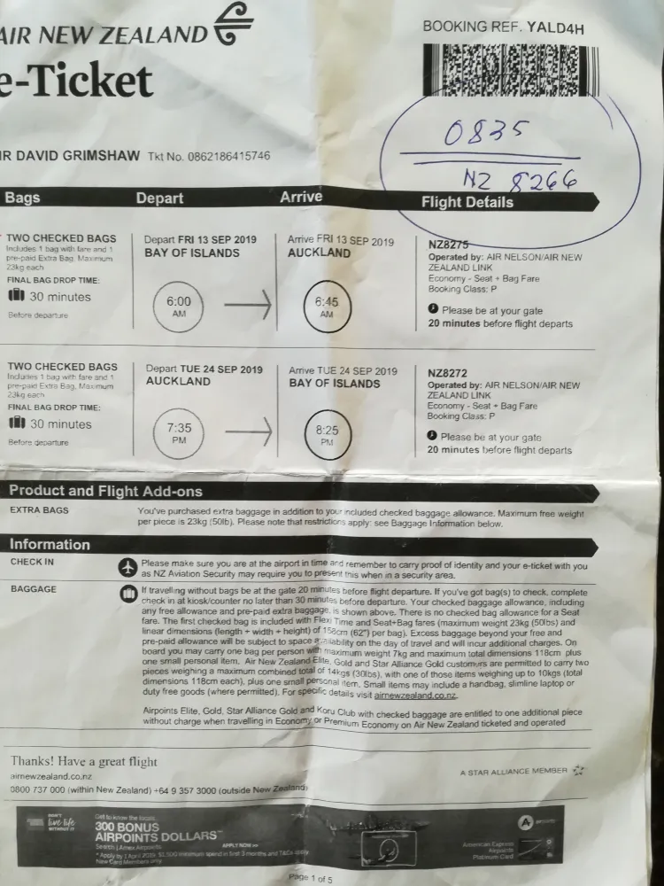 Then connect on another ANZ flight from Sydney leaving at 11.15am arriving in NZ at 5pm. So I spent hours in the Sydney airport, purchasing breakfast etc as it was going to be a long day. Finally to arrive back in NZ, which again my transport arrangements from the airport had to be reorganised.