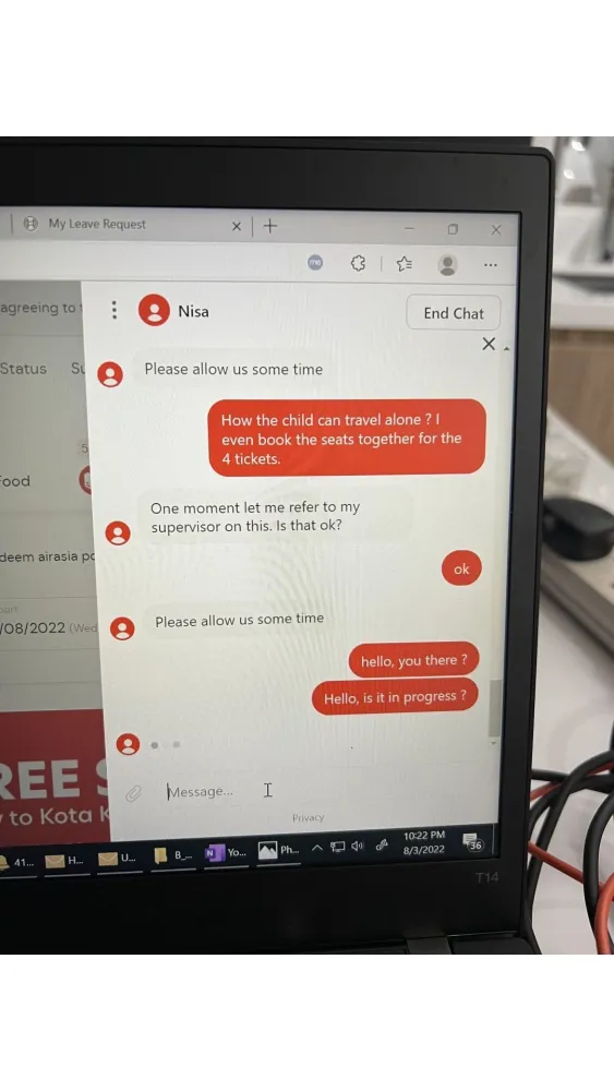 I have no way or no where to ask for air asia support ! This is the most horrible things i need to write to AVA, asked to choose menu and so on. Then only will route you to an agent, and need to queue for few hundreds people in front of you waiting. Once has got my turn, i was so happy, but the agent not really can help you, some just say hi and bye. Some will type something, ask you to wait then the agent just left the chat after sometime without feedback anything, then have to start over again and queue again for hundreds people in front of your queue. This was not my first time asking for help, it spent my time for almost few hours (7 hours) to get one thing done. This time i contacted them cause i tested covid positive and asked to refund to my air asia Credit account, the agent requested me the test result and some other documents, i sent to them as well.. then after a while, the chat just cut off, and in order for me to claim, i need to queue again. I have the child tickets who is my nephew and i was the one who did online purchase via AVA agent as well. They allowed me to purchase the child ticket, and i spent the money to choose for the seats as well, as the airline said, there must be one adult with the child (7 years old). But when i have covid positive, they do not allow me to refund the child tickets to my air asia credit account, i asked them if airline allow me to fly with covid positive, they say no, then the child also cannot fly without me.