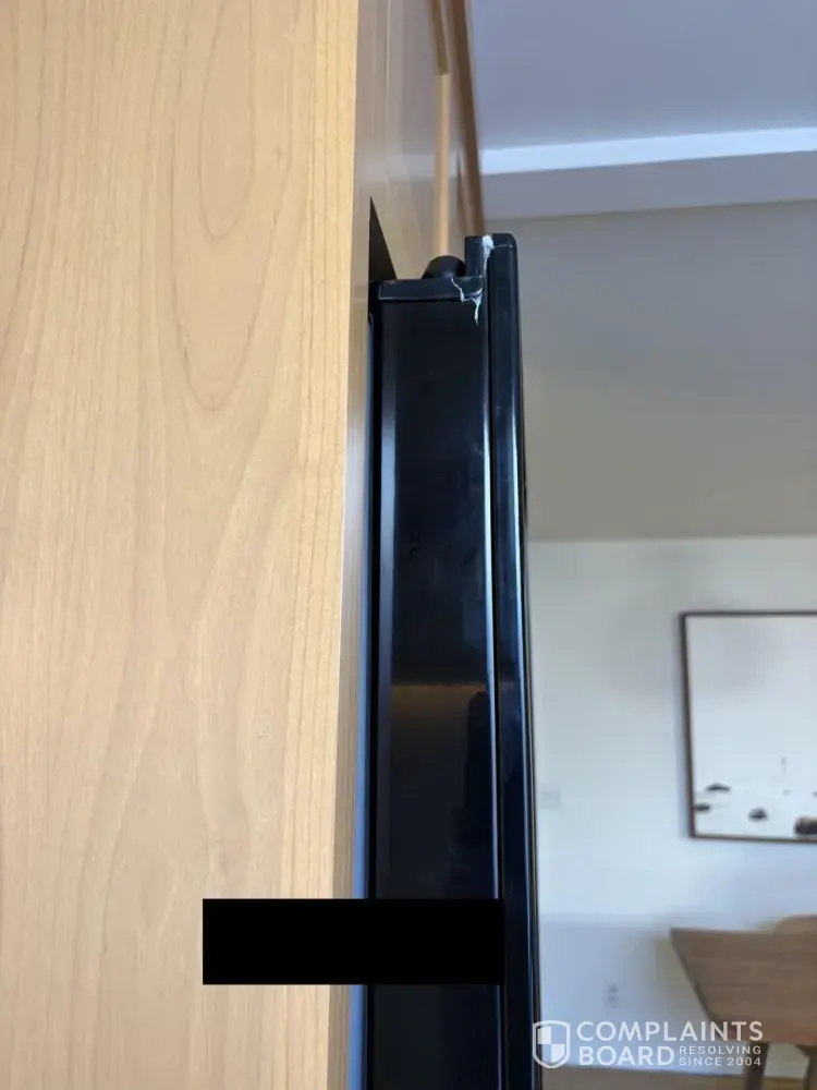 -Hinge design prevents advertised flush, counter depth, seamless installation (this is a material misrepresentation of the intended installation)
