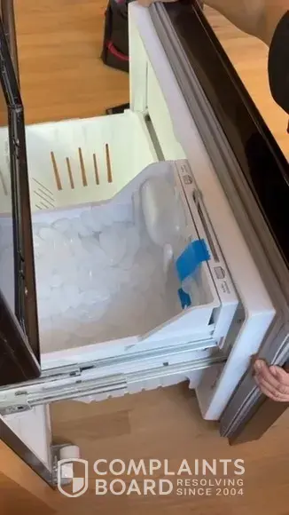 -Freezer door is wobbly and unsecured, supported by only one flimsy bracket each side and structurally unstable