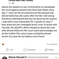 I will not give up nobody has been to court with me nobody knows the [censored] game and lies they tell. Nobody has the broken feeling I feel not seeing them not hearing them. How many times a day I break down and cry because I never wanted a life without my babies and I damn sure never wanted anyone to raide my babies. I am and will always be their mama and they re coming home. And I promise they will never feel the pain they feel again. Keep pretending to be the amazing grandparents you are it'll be over soon. I am asking and begging someone to open their eyes to this corruption case. I was not accused I was the victim of domestic violence and small town ex husbands family is friends with the judge and attorneys and dhr. Please I will pay someone review this I agreed to temp custody not legal custody nov 3 will be one year since they have let me see my 7 children. They were not taken I agreed to give temp custody so we could fight for 1 of my children to get out of foster care then they would let the rest come home but they lied. (my nonbio dad has custody)