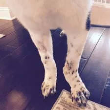 2. I noticed a skin issue on the Two puppies when they were about three weeks old. I took them into our vet and was told that because of the large litter they were born with the undeveloped immune system. They were prescribed and antibacterial shampoo and the skin issue cleared up within a week.