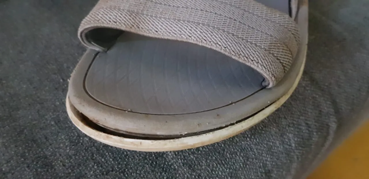 Within a month the sandals started giving way. Fraying, tearing and coming apart.