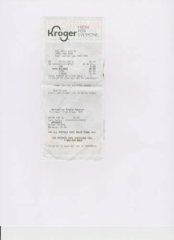 December 16, 2020 Gift card claim (claim code xxxx-xxxxxx-YKA8) $20.00