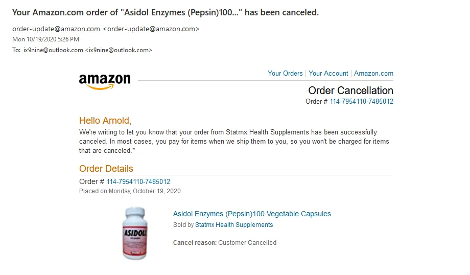 Pending Payment towards Amazon.com order ([protected]) -$23.00