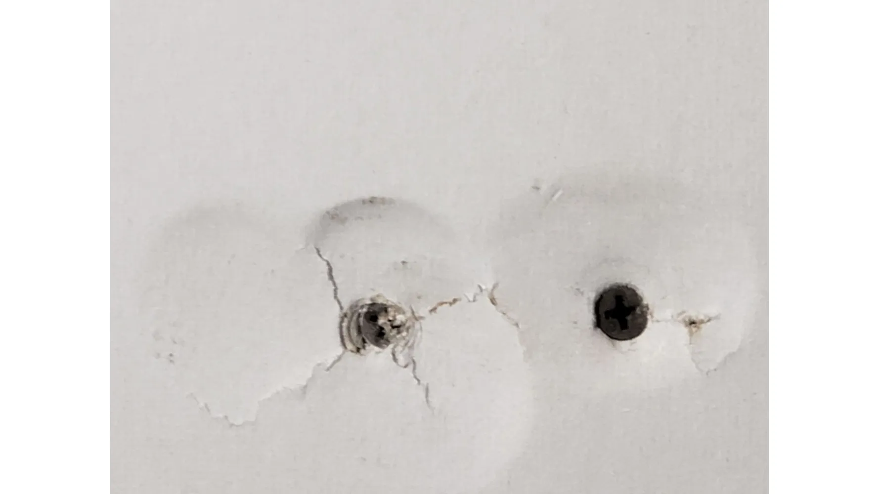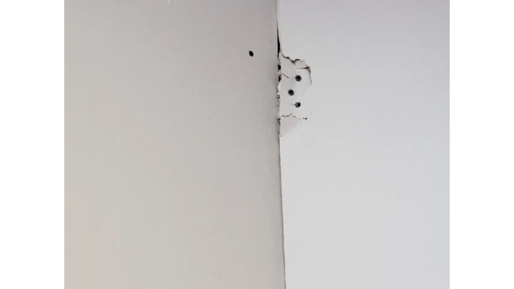 They continued to work the next day and on June 15th around 1:00 pm, Charles stepped on an outside area upstairs where there was no plywood and crashed his leg through the ceiling of a downstairs office. Andrew went to purchase a section of drywall at Lowes while Charles cut out the hole to make it square. He did not move or cover anything so we had to get a tarp to put on the carpet and grab sheets to protect computers and other furniture in the room. We moved items out to another area of the home and pushed the furniture to one side to prevent damage. Andrew returned with drywall, tape, and mud and attached the piece of drywall to cover the hole. They left for the rest of the day.