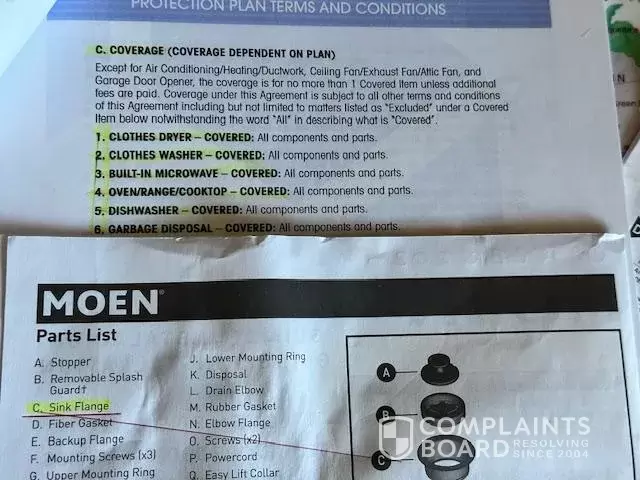 I am a CHOICE Warranty VIP customer. My 10 year-old Insinkerator garbage disposal froze up from rust. My husband removed it to troubleshoot,but did not remove the Insinkerator old sink flange. We called CHOICE and they sent Anytime Home Services tech out that first talked down to me that I shouldn't have taken out the old garbage disposal. He called his manager and got permission to put in a new MOEN that he had in his truck. His truck was perpendicular in the driveway with the motor running and the door open, so my husband could not drive into the driveway. When my husband got into the house, the tech said, "You shouldn't have removed it!" He proceeded to install the MOEN onto the old Insinkerator sink flange. I tried to get the MOEN box from him, since I own it. He gave me the manual and left. I didn't realize it until after he left, I texted him saying that he forgot to put the new MOEN sink flange in. He said it works just fine.