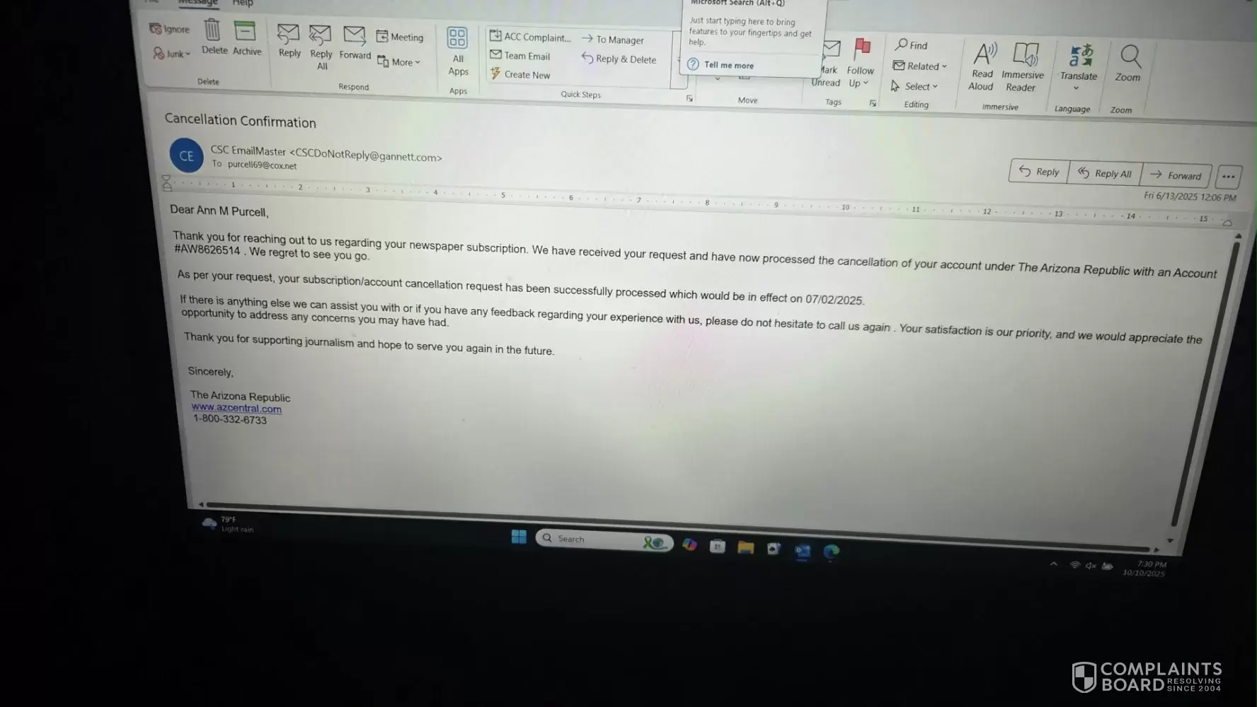 I cancelled my e-paper account in the middle of June 2025 via the 1-800 customer service number. The agent was not responsive to my cancellation request and after nearly 15 minutes finally said the account was closed. Since July I have been charged for monthly services, I have not used or asked for. I called on October 10th to find out why I am still being billed. I was told that my acct was reopened in August based on a phone call. I did not request, nor do I want this paper. I dispute the charge each month and today I see a cumulative charge for $40.25. I will be disputing this charge.