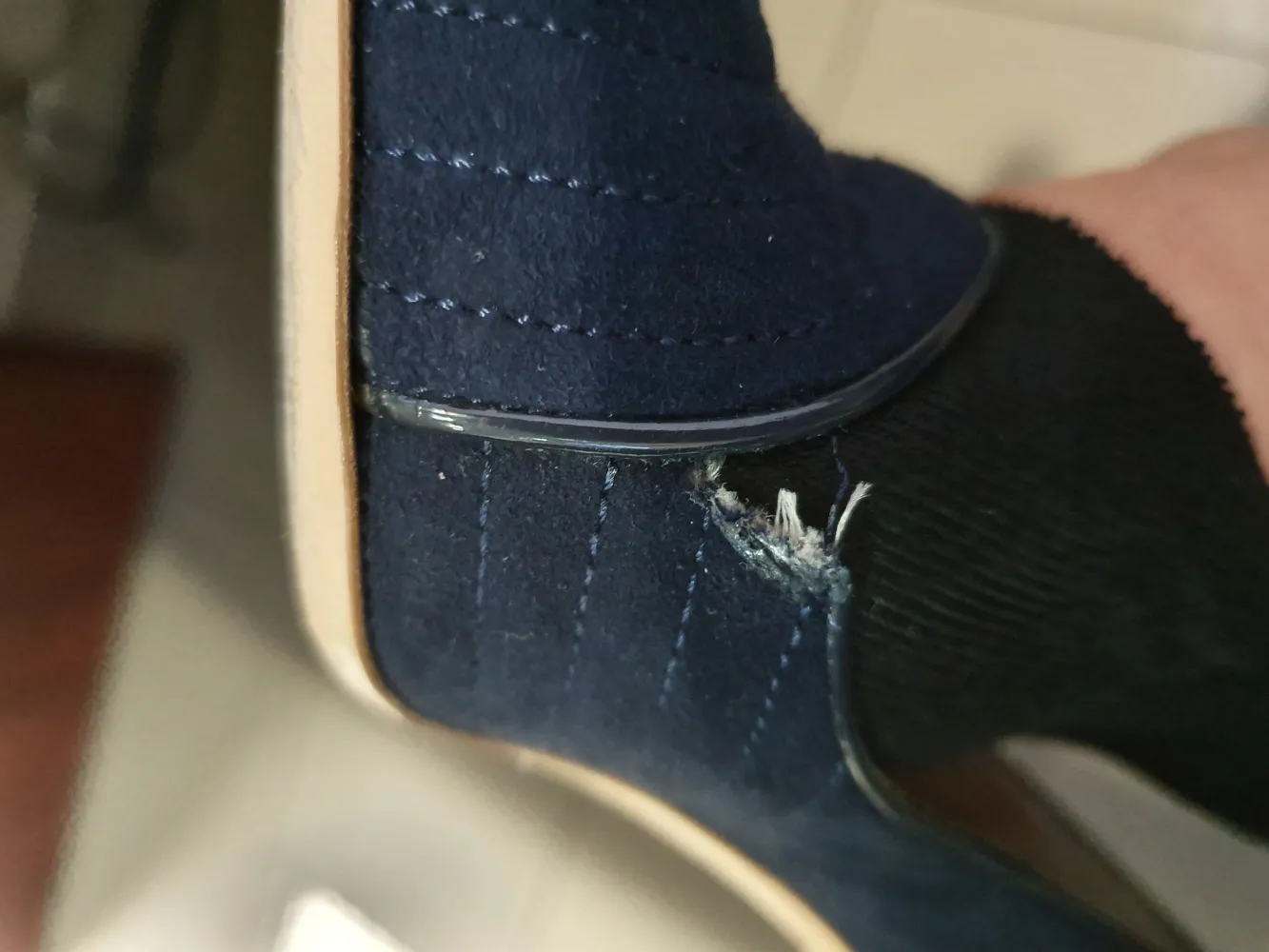 I bought a pair of shoes in July in the Armani store of outlet Vickolungo on July 20/21, 2019 and it is the second time I wear today on October 28, 2019, but they were destroyed. Both times I had them I was inside the office and no walks in the street.