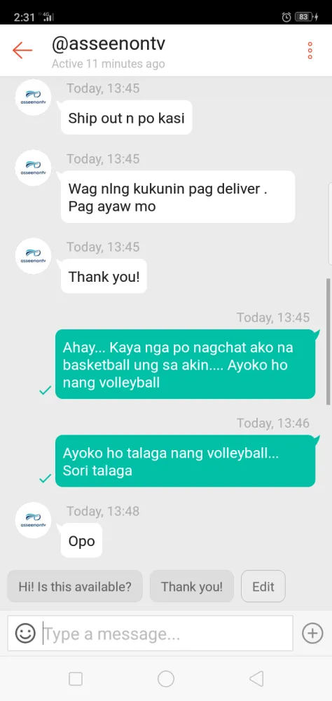 I want to complain on one of your seller with company name asseenontv... I ordered a basketball inflatable swimming pool to this seller just last week but before I place my order I chatted them in a nice manner hoping they will ship out the right item I ordered cause I dont like anything but the basketball only... Ive waited for almost a week for them to ship out cause last week was holy week... Just today (april 22) they chatted me that the item I ordered is no longer available and that they will ship out another option which is the volley ball swimming pool... So I insisted to cancel my order because I dont like the one they offered and in the first place I did not order the volleyball... So I press on the cancel order button but they rejected it... Please help me on this matter... I want to cancel my order... Cause I hate sellers who insisted their wants rather than giving their costumer the right to choose... If these order will shippped out and delivered to me... I will not accept it... Because I ask them a favor to cancel it because I did not order it... They are no longer responding to my chat... Please help me