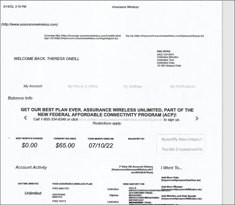 A most frustrating experience since June 6th,2022 after the EBB program ended, trying to get the ACP Dept. and so called Back Office to simply do their job! after being lied to, hung up on and getting the run around I'm appealing to you to do something. I been a customer since 11/18 with assurance wireless and this takes the cake of the most frustrating provider experiece ever!