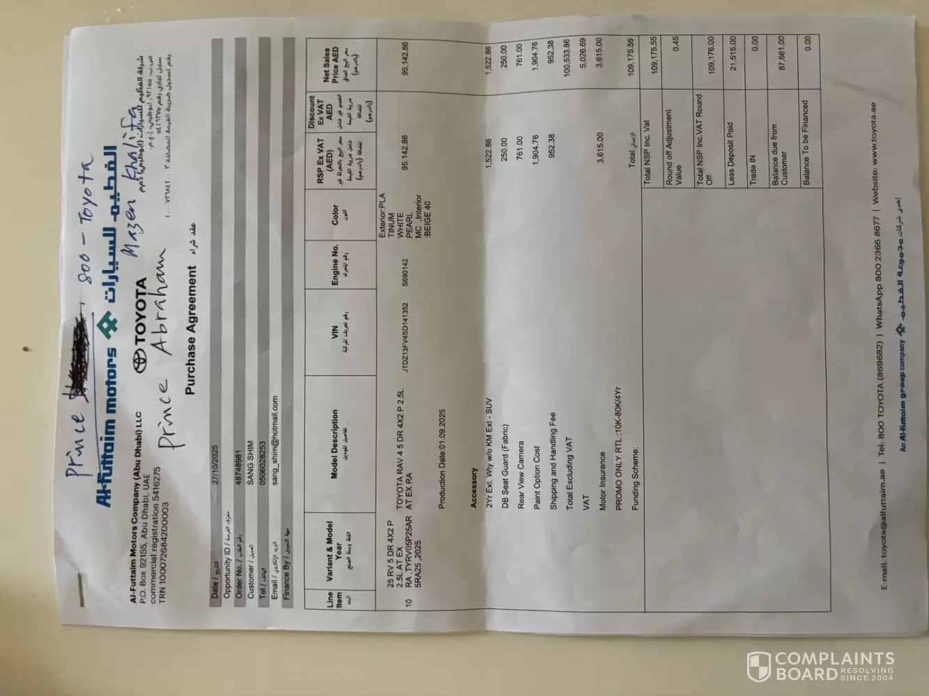Read full complaintAl Futtaim Toyota Show Room Abu Dhabi - My purchase of Toyota rav4