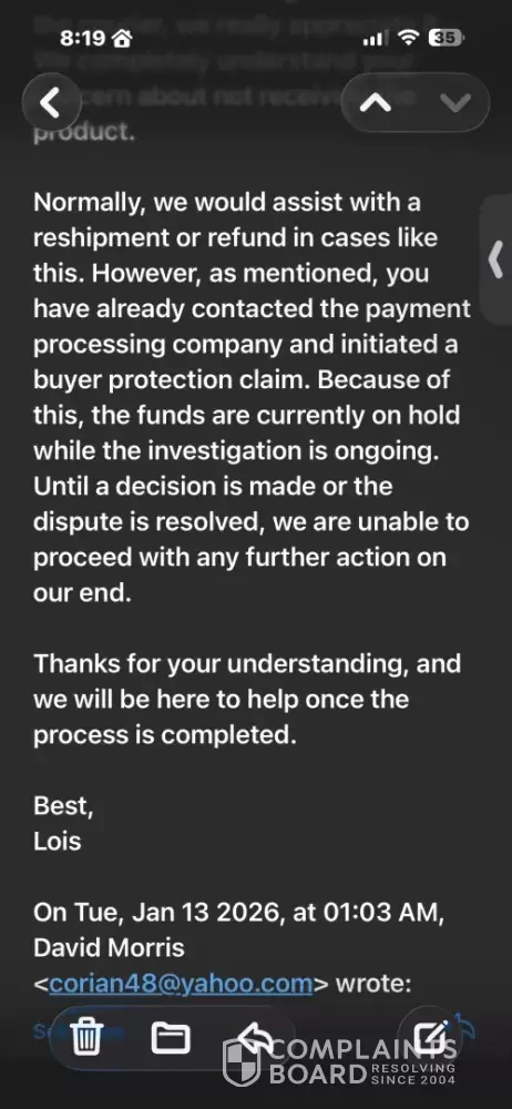 If you think you received this email by mistake, please report to editor@complaintsboard.com