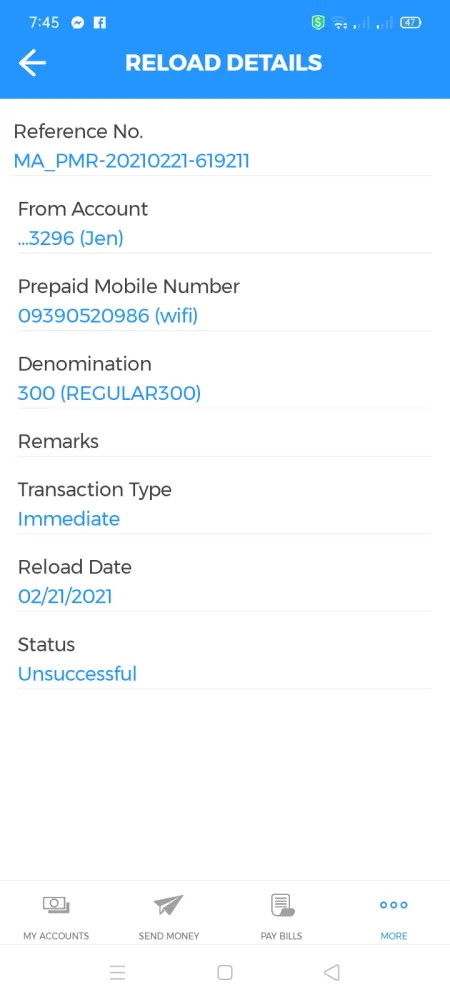 Nagload ako kahapon ng 250 unsuccessful ung load wait for 1 hr daw pero hanggang ngayon wala pa rin. Maibabalik nyo pa ba yun? Sana maayos nyo pati ni rin customer service nyo. Nawalan ma rin pala ako ng 600 pesos sa inyo ng di ko alam. Ang ginawa nyo lang ay pagpasapasahan ako. Customer service to branch vice versa. Alam ko maliit yan numerong yan pero sana naman makonsensya kayo na pinaghihirapan yan bago makuha.
