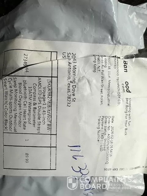 I purchased a watch for $90 from the company. I received a package delivered by the US Postal Service. When I opened the package the box was empty - there was no watch inside. I filed a complaint with Banggood and have been getting the run around through slow E-mail response and with each E-mail requesting another piece of information - which had already been supplied to them through the pictures sent to them. The last request required me to go to the Post Office and file a complaint with the Post Office. I am elderly and have mobility issues so this is not something that I can do except right off the $91 and warn other people about Banggood and the inaction on customer issues. This is a problem with their fulfillment services but they made it my problem. All I can say is Buyer Be Ware.