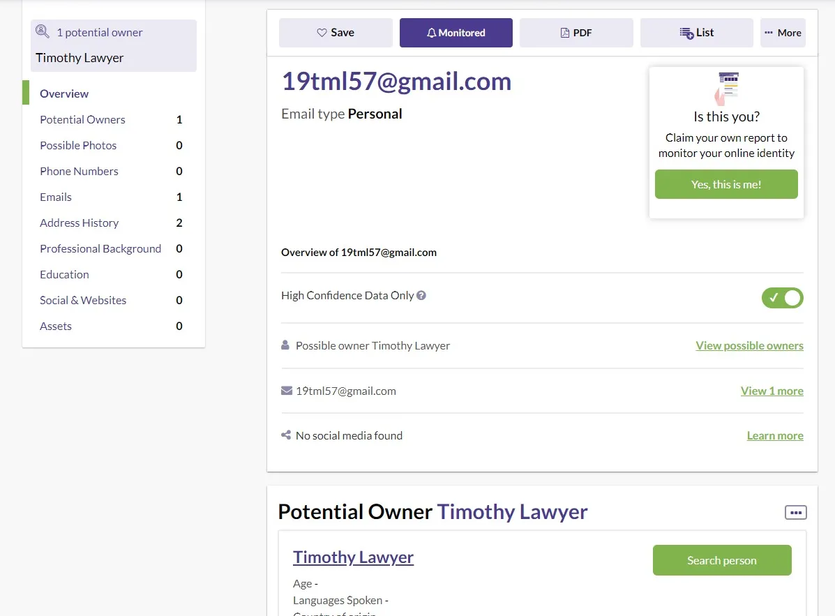 After waiting for my first search to complete, I was disappointed to find that the information provided was less than what I could find for free on Google. I was then offered another search for $14.99, but it didn't produce any better results. I noticed there were more green buttons for additional searches, but I didn't want to keep adding money to the service without getting any useful information.