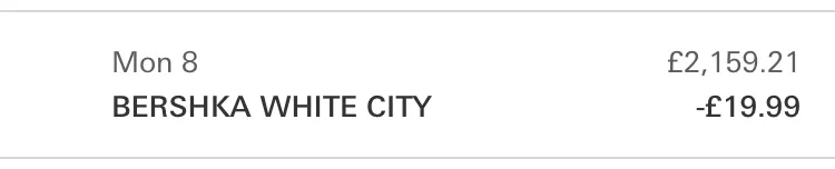 The piece of clothing was purchased on the 7th of November, in Bershka Westfield, Shepherds Bush, London.