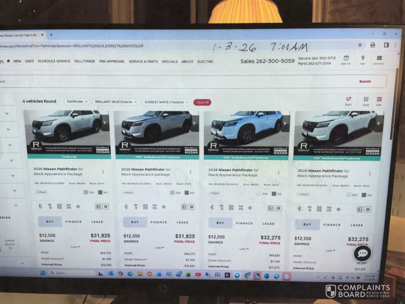 Tried to buy a 2025 Nissan Pathfinder SV SIlver advertised FINAL PRICE for $31,825. With TTL of $449 and Taxes of about $1700 that only $34K which is fine. That was the OTD price quoted to me on the phone by "Rosa" who said she was the i internet sales manage. Price ended up being over $37K with paint protection and logac type device both worthless when "SHAWN" the manage met me in the office. They would not adjust the price down to the advertised price (see attached)