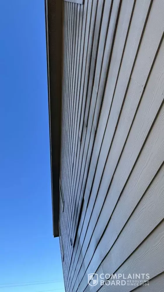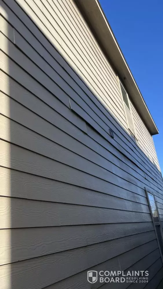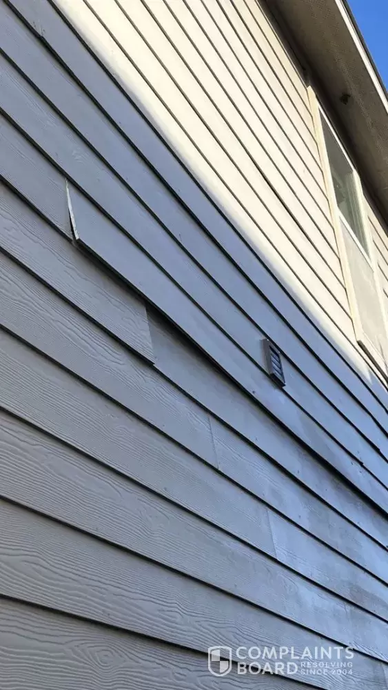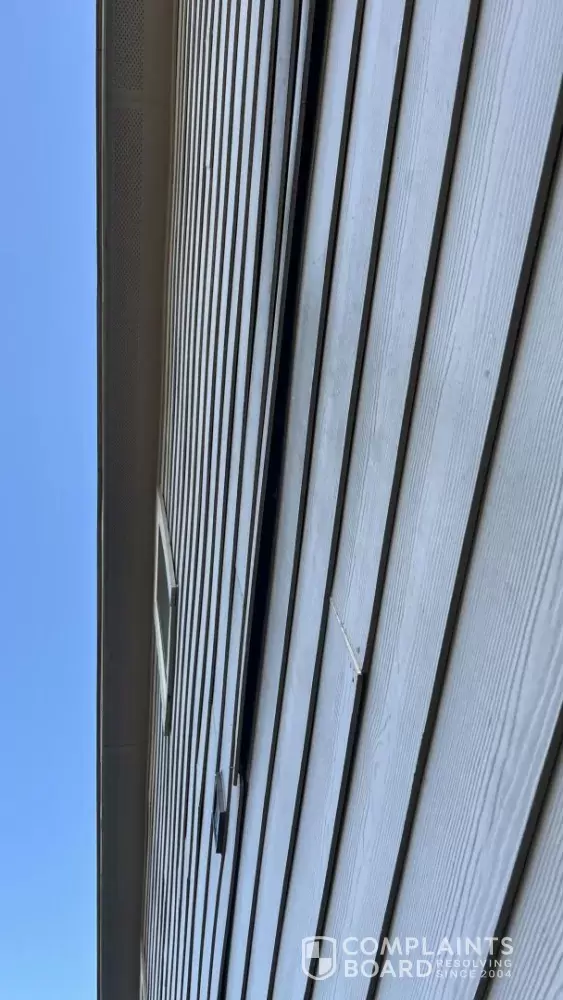 • Separation and lifting of exterior siding boards on multiple sides of the home.