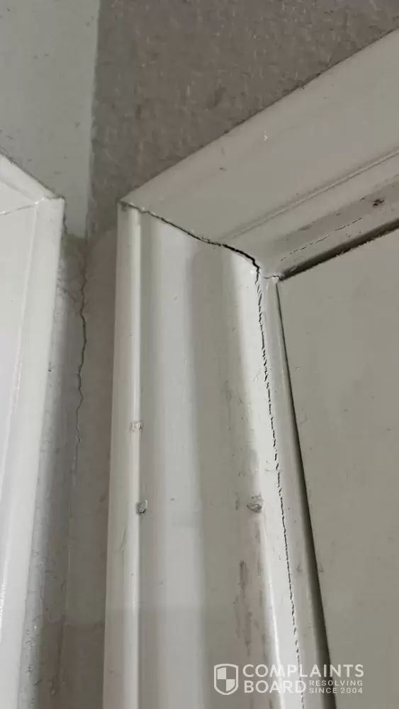 • Interior signs of movement, including separation between door and window frames and the surrounding sheetrock, as well as minor drywall cracks at corners and joints, particularly in the kitchen and dining area.