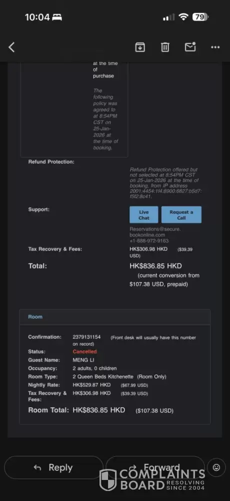 On January 25, 2026, when I initially called bookonline.com, I was physically at the front desk of Studio 6. The bookonline.com representative informed me that the cancellation would only be approved after the hotel manager gave authorization. I personally heard the hotel manager answer a call from bookonline.com and approve the cancellation. Only after the manager approved the cancellation did I receive the confirmation email.