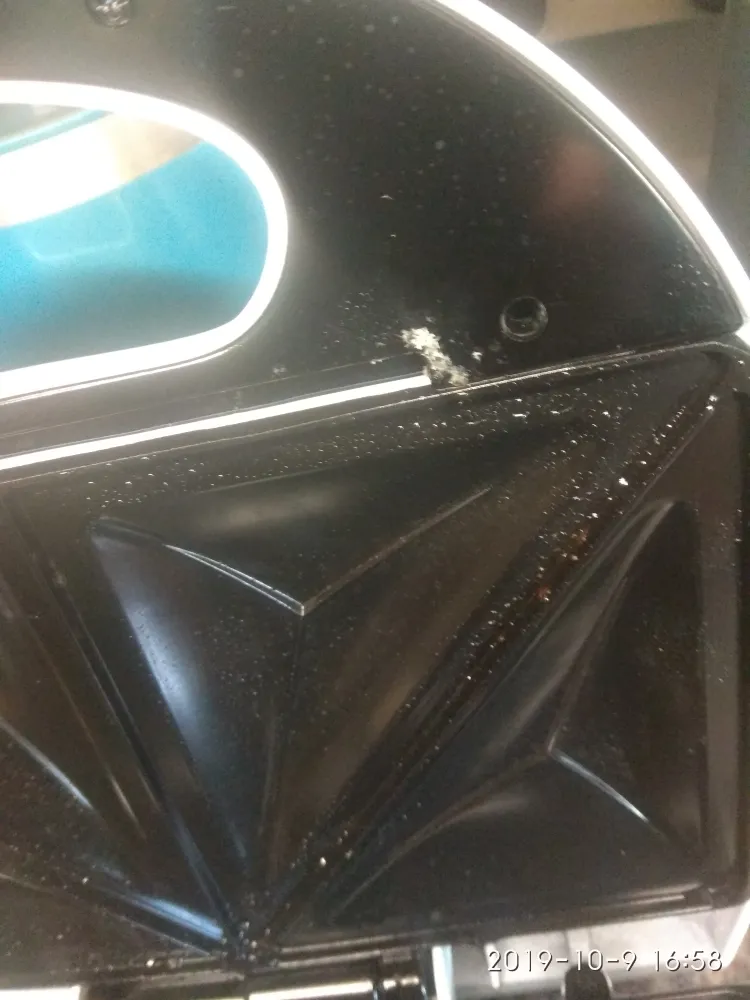 I bought a two portion sandwich toaster yesterday and use it today for the first time, I read the information booklet for first time use and wiped it as instructed, did up a sandwich and used the toaster and when it was ready to opened it and there was a screw on my toast which had apparently come off from inside the lid, I am very disappointed at this happening as it could have been ingested