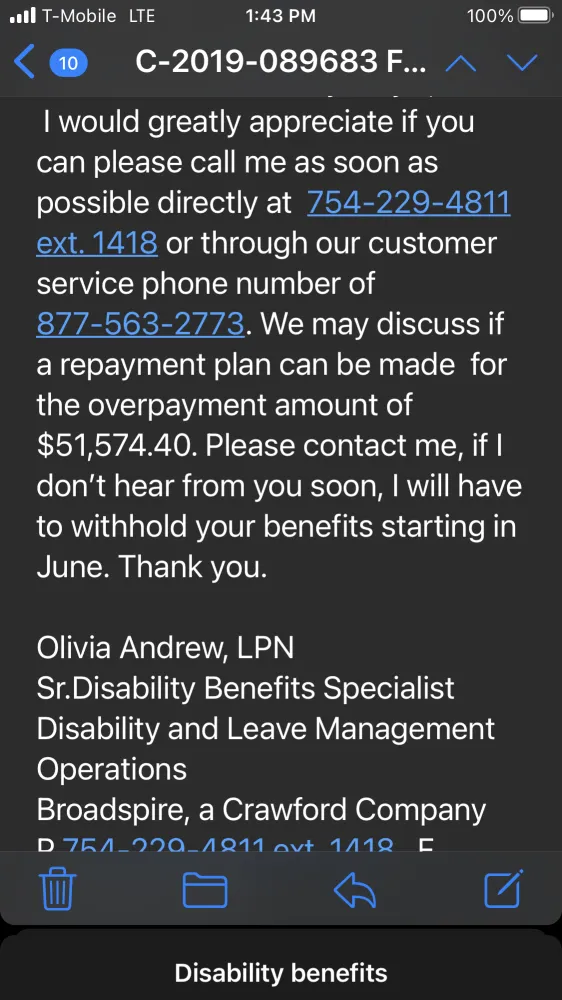 In May I tried to use my federal credit unions benefit service via Broadspire and their administrator Crawford Co out of Fl. It’s now Late October and I’m getting NOWHERE.