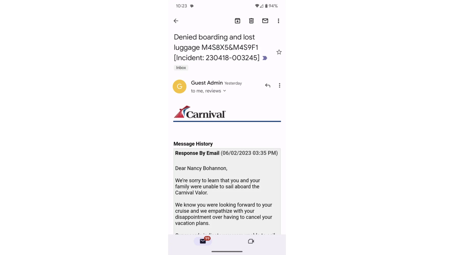 Still Waiting to hear from Carnival. THIS ISSUE IS FAR FROM RESOLVED!