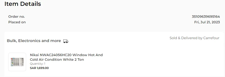 Please be informed I had purchased a laptop online from Carrefour on 24th April 2023 vide Order Number 3352732676844A. I received the order on April 28 2023.