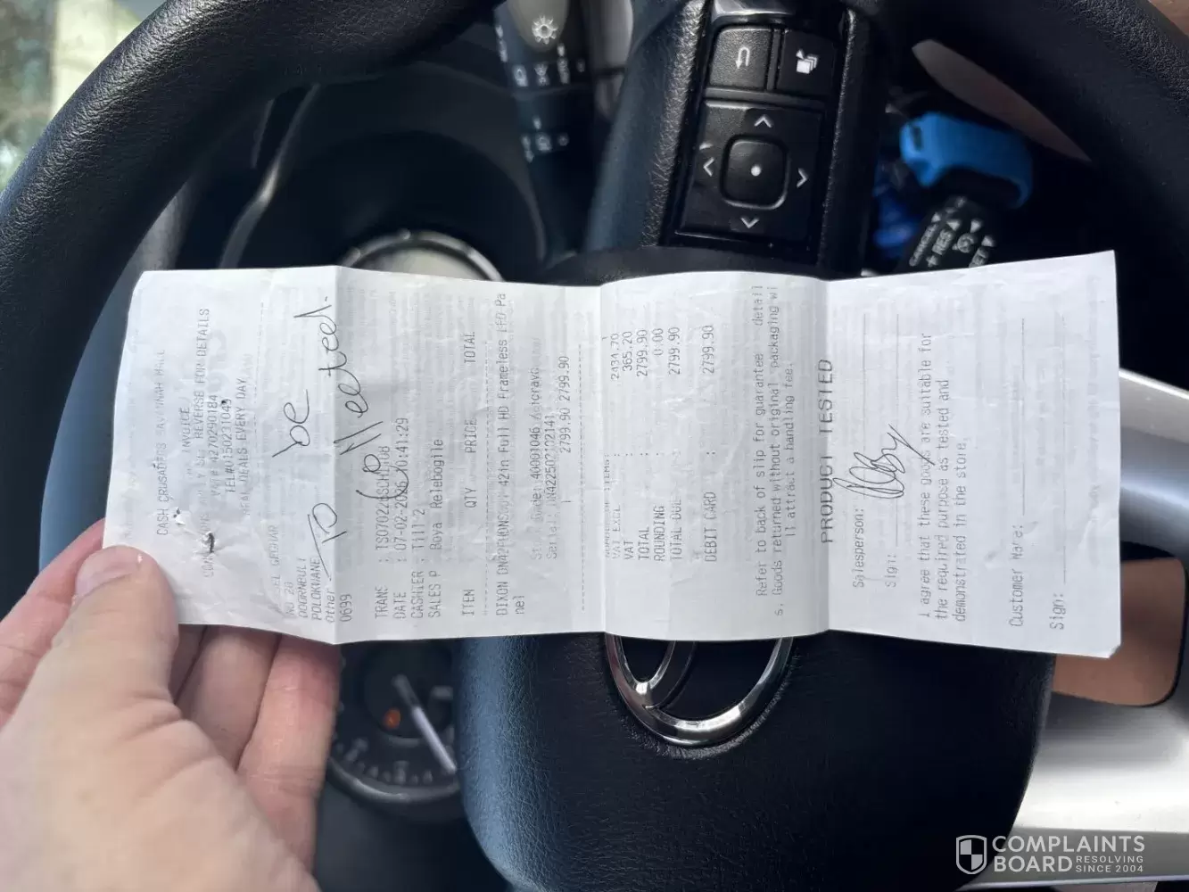 I left the TV at the store and am now escalating this matter to Head Office. I expect this issue to be resolved promptly.