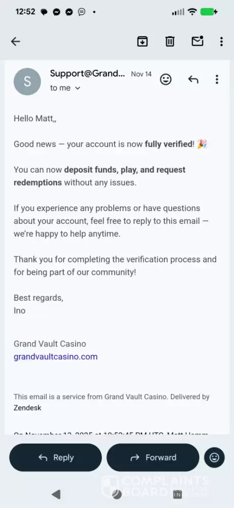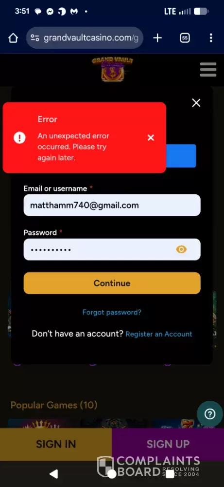 Grand Vault Casino - Breach of contract