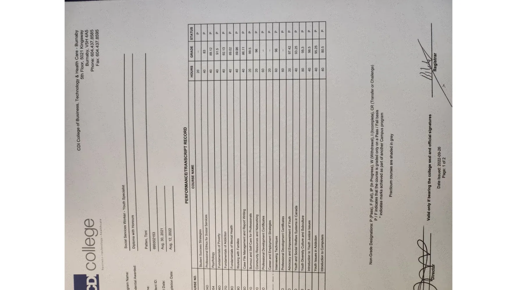 I inquired about courses beginning February 2021, I was told I had to be clean and sober for a year before I could start my course. I would have a year sobriety in April at that point. They said that was fine and would be able to start me sooner if I wanted, they also assure me that I would be able to find employment in Alberta regardless of the program being set in British Columbia. I was excited and said yes, they immediately put me in contact with a financial advisor. The financial advisor pushed through my paperwork and got my loans approved for my March start date. I had orientation March 5th and started my course March 8th. I plugged my way through the courses and made the time-lines work even though I was told I would be able to work at my own pace and it would be stress free learning. It was not stress free at all. There were definitely strict deadlines and exams every week or two. I still worked my way through while managing my household and taking care of little ones. It was when my son was on summer holidays that the stress became too much and I asked to resume my studies in the fall so I could take care of my child. They told me I would have to withdraw (drop out) from my courses and re apply in the fall, so I continued and tried my best to manage everything in my life, but by fall I was burnt out. So I dropped my courses. I received a phone call offering me to complete my program in April of 2022, I was thrilled and was once again put in touch with a financial advisor for another round of student loans and grants. A month or so in I had started looking for somewhere to do my practicum and met up with a professional in my local area. We discussed my course and college and she informed me that I would never be able to work in the social services industry in alberta without becoming registered with the Alberta college of social workers. So I did some research and found that the program through CDi wasn't going to be enough to be able to be a registered social worker in alberta. I was devastated and once again withdrew from the courses. I then began to research other "failure" stories out of CDI.