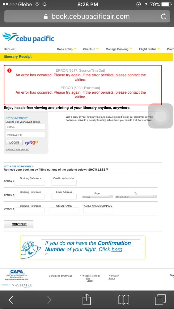 -it was March 5, 2017, Sunday, I book a flight dated March 20, 2017 using my credit card. I attempt several times to book the said flight but it was a failure and wasn't successfully book the flight. In addition, there was no itinerary receipt received from the said flight but my credit card was charge even it was a failure and was not successfully booked. Sad to say, the charge was double and even thrice because i attempted several times to book the said flight.I just want a return with the said error because it is not easy to accept the said charge without even availing it.