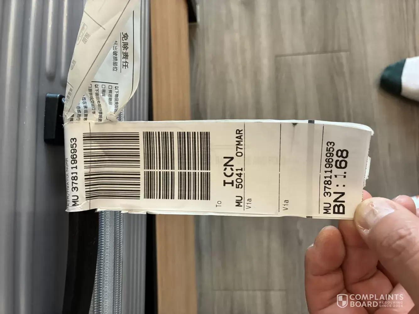 Damaged baggage claim – Flight MU5041 (07 Mar)