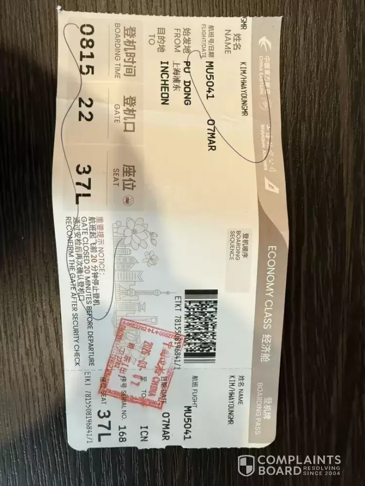Read full complaint4 China Eastern Airlines Corporation Complaints